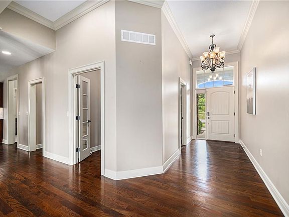 Impressive 1.5-story residence by Carson Custom Homes, ideally positioned on a spacious corner lot in the sought-after Montebella community. This beautiful home features 4500+ square feet, 4 bedrooms, 4.5 baths, 3 car attached garage, and walk out lower level. Abundant natural light enhances the semi-open and functional floor plan. The chef’s kitchen is a standout with its oversized center island, granite counters, hardwood flooring, walk-in pantry, SS appliances, gas range, and rich wood cabinetry. A warm hearth room with a custom fireplace flows seamlessly into the formal living room and dining area. Formal living room boasts high ceilings, a wall of windows, and gleaming hardwoods Private office with French glass doors creates the perfect home workspace located off formal living room. The main-level primary suite offers vaulted ceilings and a luxurious ensuite featuring dual vanities, a whirlpool tub, walk-in shower, and generous sized closet. Upstairs, you’ll find three spacious bedrooms with hardwood floors and walk-in closets. Two of the bedrooms share jack & jill bath, while other provides its own ensuite. The finished walkout lower level is designed for entertainment, complete with a theater room and full bath. Outdoor living is just as inviting, with a covered deck and walk-out patio. Move in ready or make your own finishing touches. Enjoy all of the amenities Montebella has to offer, swimming pool, club house, and walking trails. Convenient highway access makes commuting simple. This remarkable home is one you won’t want to miss!