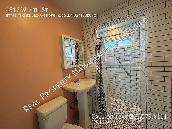 This property is part of a duplex. The other unit, located at 4515 W. 4th St., Los Angeles, CA 90020, is a detached studio with 238 square feet, a gas stove, and an exterior assigned washer and dryer. Rent is $2,095 per month, with street parking available. Both homes may be rented together at a $300 monthly discount, for a combined total of $4,190.