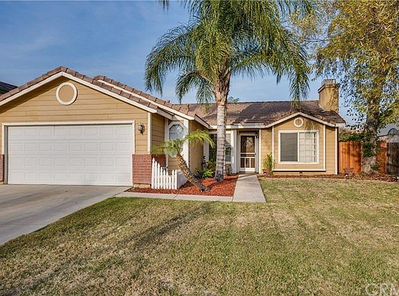 Buyers will love this well kept single story home with 4 bedrooms, 2 full bathrooms and 1274 square feet of living space. Situated in a quiet and peaceful cul-de-sac location, this home has great curb appeal and plenty of nice features that include a cozy brick fireplace, garden window in the kitchen, open floor plan with lots of natural light, sliding glass doors in both the kitchen and master bedroom that open to the covered patio, ceramic tile and wood laminate floors, recessed lighting, ceiling fans and 4" baseboard throughout. The home sits on a large lot with an ample sized back yard for your enjoyment. Easy freeway access and not far from parks and schools. Great family home at a great price! Contact Sofia Chacon TODAY for more information-- Call 951-258-5245 or email RealtorSofiaChacon@gmail.com.