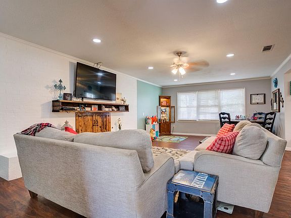 Great home with space for living! It features a large living/dining, vinyl plank flooring, newer carpet in the bedrooms, lots of newer paint in great neutral color. Kitchen has plenty of cabinet space and tile backsplash. Large laundry room too! Beautiful accent wall down the hall leads to a spacious master bedroom and full bath with a stand-alone shower. The huge backyard has a storage shed, chicken coop, and covered patio. Cool blue tooth, nightlight and speaker in the bathroom. HVAC and water heater replaced in 2019. Solar panels are excluded and will be removed immediately after closing by the solar panel company.