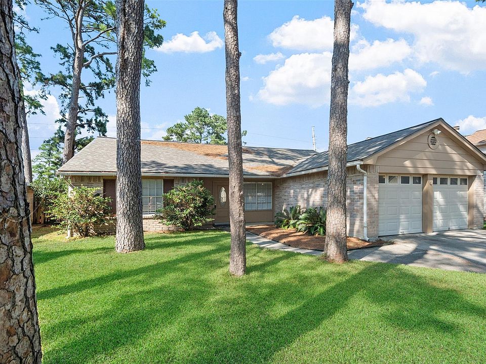 Welcome to this one-story home featuring 4 spacious bedrooms and 2 full baths! Has been completely repainted with new flooring and a brand new roof. This inviting layout offers main living area, and a warming wood burning fire place, and cozy carpets in the bedrooms. Has Jack N Jill bathroom for second bathroom. Has a large kitchen with electric stove/oven, dishwasher and granite countertops in kitchen and bathrooms! Brand New Poured driveway!! The backyard is fenced with a covered patio for relaxing or hosting gatherings year round! Has a 2 car garage with a double driveway! Easy access to I45, Beltway 8, even 99. Is about 6 miles from Exxon/Mobile and Springwoods. Close to The Woodlands, Conroe and Tomball, all have great shopping. Will not last long, priced to sell!