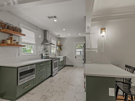Timeless characterPrimary suiteLarge fenced backyardModern updatesSpacious covered patioBright open layoutStriking green cabinetry