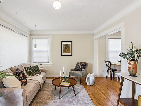 Welcome to this beautifully updated one-level ranch home in the sought-after Reed neighborhood! Thoughtfully renovated over the past three years, this light-filled residence combines classic charm with modern convenience. Step into the sunny living room, where gleaming hardwood floors and large windows create a warm and inviting space. The living area flows seamlessly into a spacious, remodeled kitchen featuring quartz countertops, a stylish tile backsplash, newer appliances including a French door refrigerator, a cozy breakfast nook, and a garden window overlooking the serene backyard. This home offers two comfortable bedrooms, both with hardwood floors, one enhanced by built-in features. Both share a beautifully remodeled full bath with a quartz vanity, newer tile floor, and a deep soaking tub with Pratt and Larsen subway surround. Extensive upgrades completed since 2023 include all new Milgard windows, kitchen appliances and fixtures, new laundry, new water heater, new A/C, new roof, updated wood and flooring, an upgraded electrical panel, and all new interior and exterior lighting. A new sewer line was put in in 2024 when the street’s main line was also redone. Outside, enjoy the private backyard oasis with a slab patio perfect for entertaining or al fresco dining. Multiple garden areas and a custom built catio provide space for both two- and four-legged residents to enjoy. Additional features include an oversized garage perfect for ADU potential with both electrical and gas, and a fantastic location with a Walk Score of 95. This is a true Biker’s Paradise. You're just steps from parks, shops, restaurants, and groceries in one of the city's most connected neighborhoods. Don’t miss the enormous attic space for additional storage. [Home Energy Score = 5. HES Report at https://rpt.greenbuildingregistry.com/hes/OR10241444]