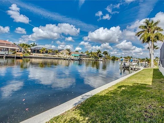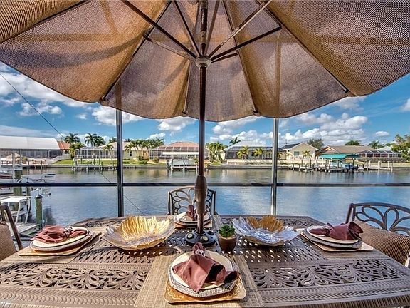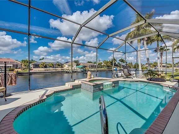 Furnished Luxury Gulf Access Home situated on 150 Ft. Wide canal in desirable SW Cape Coral. Immaculate custom built home has 2,939 sf. with 3bedrooms, 3bathrooms, family room, great room, dining room, and den/Office. Double tray ceilings up to~14 ft. in height, built-in entertainment center, fire place, large master suite w/walk in closet, Jacuzzi tub, walk in shower and bidet. Interior features also include granite countertops, tumbled marble and travertine stone floors, custom wood cabinets, gourmet kitchen with top of the line stainless steel appliances, huge breakfast bar area, and arched windows in every room. This dream home also features tile roof, paved driveway and walkways, 2 car garage, beautiful waterfront views across screened oversized lanai and pool deck with heated pool and spa.