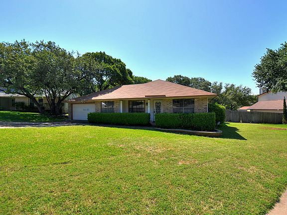 Multiple Offers~Beautiful treed lot over 1/3 acre in cul-de-sac & corner lot~Home is ideally situated back off street w/ long driveway~Lg family room w/ vaulted ceiling, gas fireplace~Guest Quarters is through laundry room~4 bedrooms~3 full baths~Master Bath-double vanities & 2 closets~2 workshops or Office/Studio w/ electricity~Tile in family room, breakfast, hallways, & 2 of the 3 baths~Brick on front & hardiplank type on 3 sides~Desirable & established neighborhood convenient to The Domain & Apple.