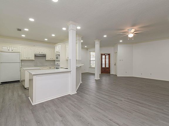 WONDERFULLY UPDATED PATIO HOME w/HUGE FENCED BACK YARD! BRICK 2+BDRM/3 BATH/2 CAR GARAGE w/ HOME OFFICE & SUN ROOM (Or 3rd BDRM). HUGE OPEN CONCEPT FAMILY RM TO KITCHEN & DINING AREAS. ISLAND KITCHEN W/QUARTZ COUNTERTOPS. EXCEPTIONAL CUSTOM CABINETRY THRU OUT. PRIMARY BDRM has 5 CLOSETS!! 2 WALK IN CLOSETS & 3 STANDARD - ALL w/BUILT IN CABINETS! MODERN LIGHT PRIMARY BATH has QUARTZ COUNTERTOPS W/DOUBLE SINKS, MARBLE LOOK TILED SEPARATE SHOWER & JETTED TUB. SPLIT BDRM FLOOR PLAN. INSIDE UTILITY ROOM. RECENT 2025 UPDATES: ENTIRE HOME FRESHLY PAINTED, LUXURY VINYL PLANK FLOORING THRU OUT, ALL 3 BATHROOMS HAVE BEEN FULLY UPDATED W/TILE SURROUND SHOWERS & TUBS. QUARTZ COUNTERTOPS IN KITCHEN & ALL BATHS. UPDATED LED LIGHTING. EPOXY COATING ON GARAGE FLOOR. CLOSE TO SCHOOLS, RESTAURANTS, MEDICAL, SHOPPING & SAM HOUSTON TOLLWAY. 1/4 ACRE LOT with SHADED BACK YARD & BUILT IN BBQ GRILL. QUIET NEIGHBORHOOD! ENJOY THIS CLEAN UPDATED HOME & ALL THE PERKS OF ITS OWNERSHIP! COME SEE TO BELIEVE!