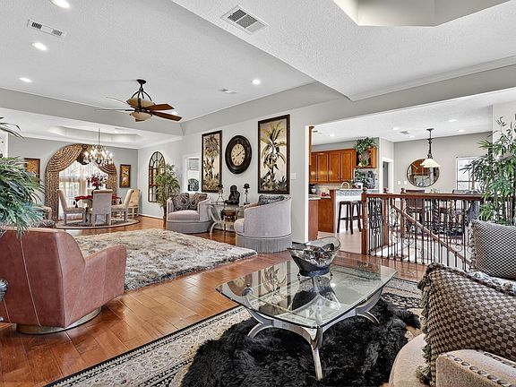 Welcome to this beautifully designed home in the prestigious, gated Weston Lakes community! Overlooking the golf course, this two-story retreat offers elegant living space with four bedrooms, three and a half baths, and multiple versatile living areas. The main level features an open-concept kitchen with an island, breakfast nook, and spacious living room that opens to a scenic balcony with panoramic fairway views. The primary suite offers a spa-inspired bath and a generous walk-in closet. Downstairs includes a sitting room with a wet bar, guest bedrooms, and a sun room/fun room leading to the fenced backyard with a fountain, fire pit, and relaxing outdoor spaces. Enjoy resort-style amenities, golf, pools, tennis, parks, and walking trails, nearby dining, entertainment, and shopping in charming Fulshear. Don’t miss your chance to experience golf course living at its finest. Call today and schedule your private tour!