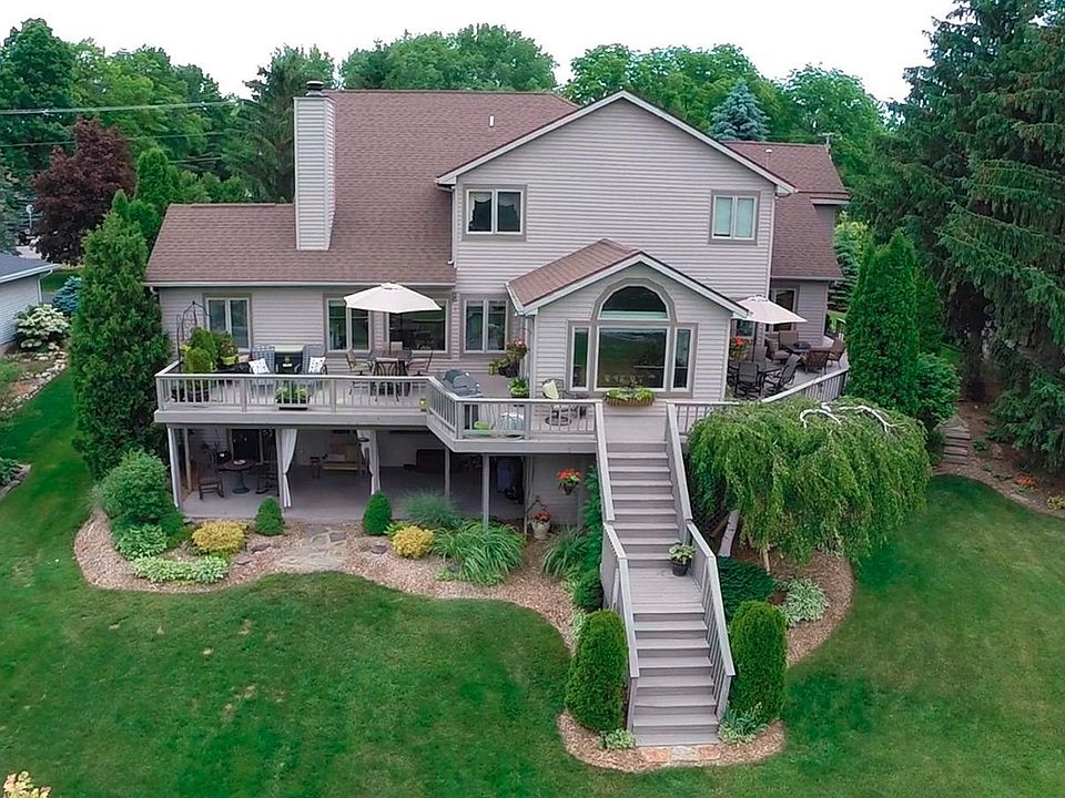 Beautiful home on all sports Marl Lake, connecting to Silver Lakew/140 Ft of frontage. 3680 SQ FT of finished living space, 4 bedrooms and 2.5 bathrooms. Gorgeous kitchen w/hardwood floors, granite countertops, snack bar, pantry and lots of cabinet space. Formal dinning room, w/ great view of the water, open concept floor plan, family room w/ fireplace and soaring ceilings. Formal living room, office and first floor laundry. Fantastic master suite w/french doors, jetted tub and separate shower. Full finished walkout basement w/additional bedroom, great for entertaining. Large deck off the main floor an covered deck off walkout basement. 3 car attached garage, beautiful landscaping. lakeside board walk and dinning area. This home has it all