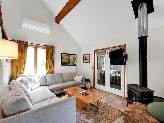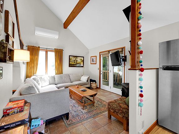 Charming 3-bedroom, 1.5-bath home tucked away on a quiet dead-end street in Southeast Eugene, just minutes from the University of Oregon. This cozy cabin-style home features an open floor plan with vaulted ceilings, hardwood floors, and a gas fireplace in the family room. The kitchen offers stainless steel appliances and butcher block countertops, opening seamlessly to the main living space. A loft with a balcony overlooks the family room, adding light and dimension. Enjoy a peaceful, private setting with a covered wraparound deck that extends from the front entry to the backyard—perfect for outdoor living. The third bedroom is located in the approx. 300 sq ft finished space above the detached garage, ideal for guests, a studio, or home office. Located a block from Shadow Wood Park and near Spencer Butte, trails, and local favorites, yet tucked away with minimal noise and nearly no visible neighbors.