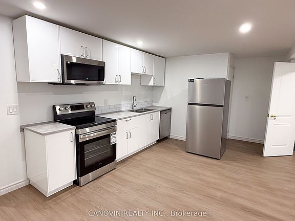 Spacious, newly finished 1-bedroom basement apartment with private entrance! Open Concept, Bright, Great Layout & With Its Own Separate Entry. This bright and modern unit features a large living area with a full-sized window, pot lights all rooms, a 3-piece bathroom, and dedicated laundry. Enjoy independent heating, air conditioning, and a private hot water tank exclusively for this unit. Located in a quiet, family-friendly neighborhood close to schools and parks, Steps to Upper Canada Mall, Costco, Walmart, Short drive to Highways. No smoking, no pets. One Parking Space On Driveway. Tenant Responsible For 1/3 of utilities.