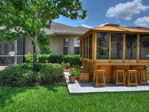 This is a former model home that is LOADED with upgrades and extras! Five solar tube skylights brighten the interior. Staggered, various sized travertine flows from the dining room throughout the kitchen and breakfast areas. Hand scraped laminate ties everything together in the great room. This home boasts 4 bedrooms and 4 full baths, a separate home office, formal dining room and breakfast area as well as a huge upstairs bonus room that has its own full bath! The master closet is completely organized with cabinetry. There's also surround sound, intercom, and a Ring doorbell. The home is spotless - even the garage has been painted to match the interior and has an epoxy floor! Throw a steak on the fire pit in your courtyard then relax in the enclosed hot tub. This home also comes with a transferrable home warranty that is good until April 2020! It's appx 2.5 mi to the i4 / i75 interchange. What more could you want?? This is a MUST SEE!