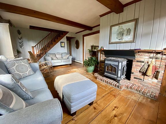 Welcome to Damariscotta in the mid-coast of Maine. This move in ready three bedroom farmhouse features wide plank pine flooring, exposed beams, and brick hearth. Located in a beautiful country setting. Sit on the back porch and gaze into your private back yard. Attached barn and outbuilding shed offer space for hobbies and animals. Active garden space ready to seed for next season's harvest. Kitchen, dining, living room, and den on the first floor as well as a first floor bedroom and full bath and laundry. Three bedrooms upstairs with bathroom. Mature landscape and wooded and field views round out this must see home. Call today to schedule a showing