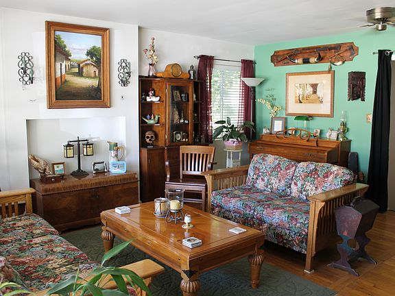 This is a country style 2 bedroom, 2 bath home with a unique floor plan and many amenities....such as hardwood floors and a claw foot tub in the master bathroom. The house has both a living room and a family room as well as a dining room and eat-in kitchen. The family room leads to an airy screened-in porch through a set of French doors. The detached garage is over 900 square feet and has a permitted office/shop area within. There is also 220 electrical hook up in the garage. The backyard has RV parking with a dump access as well as a garden patio area for relaxing.