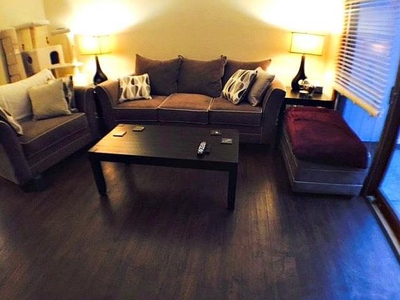 SHOWS BEAUTIFULLY! Move-in ready ... New pergo flooring, equipped kitchen, washer/dryer stay. HOA includes access to pool, tennis courts, basketball courts, playground. Master insurance, Gas/water/sewage, grass and snow removal, and exterior maintenance also included in HOA. Storage under steps and crawl space in 2nd BR. Unit is located in low traffic area, at end of Country View and near side yard and playground, nice for pets and kids! Nice patio off LR, shed provides additional storage.