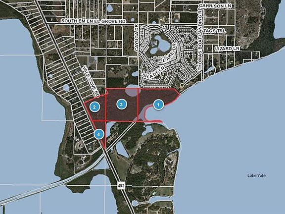 95+/- Acres located directly on Lake Yale with over 2,000 frontage on the water and over 2,000 feet of paved road frontage on CR 452. Enjoy beautiful property, sandy beaches, amazing wildlife and gorgeous trees. Ideal property for single family home, ranch or retreat. Priced right!