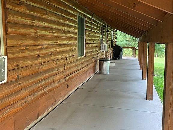 This custom built log cabin sits back from the road over 200'. It features 2 bedroom, 1 Bath with open floor plan kitchen-living area. A large covered porch running the length of the house. Full walkout basement that can be finished for more living space. Stainless appliances. A new 21x32 heated pole barn. Brand new furnace. The option of wood furnace or propane heat. Come take a look at this unique property! 2020-10-07