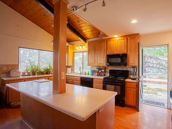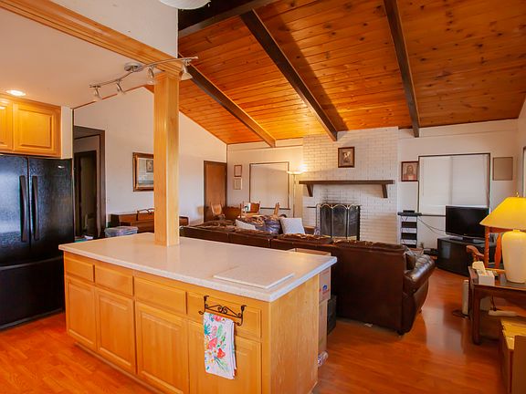 SHORT WALK TO LAKE GREGORY! SECOND ADJOINING LOT! Watch the 4th of July fireworks right from your home!! Gorgeous mountain views off your very own private balcony. This charming 2 story home is located on a private driveway with level parking and level entry. Vaulted ceilings with open beam ceilings make the home feel warm and cozy. Gorgeous kitchen with recessed lighting and large island. The living room is spacious and has a brick fireplace. Vaulted open beam ceilings. Downstairs, the home has a wood stove, 1 bedroom plus a full bath, living room, and its own entrance. Enjoy more space as the home includes a second adjoining lot for extra privacy and extra space outdoors. Seller to entertain offers from $249,999 -$274,999!