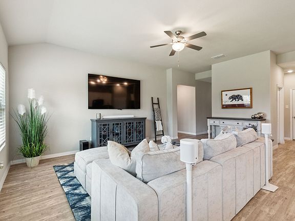 Looking for an oversized corner lot to enjoy? Looking to add a pool or just want some sprawling green space for Fido? Looking for a unique floorplan that isn't like every other home on the block? Look no further! Spacious 3 bedroom with dedicated study and two living areas in desirable master planned community of Woodcreek. Contemporary styling with light and bright color palette todays buyers are looking for. Open concept eat-in kitchen and living room is flooded with natural light, and overlooks pool sized backyard with covered patio that is ideal for outdoor entertaining. Exciting kitchen with stainless appliances, ample cabinetry, large granite island with sink and full sized walk in pantry. Primary retreat down with a luxuriously large closet and oversized shower. Upstairs features a generous secondary living room that can be used as a media room, family room or gym. Split secondary bedrooms up so everyone has space and privacy. Ideally located less than a half mile from elementary school and community pool, park, pond and dog park. Exterior jellyfish lighting. VERY gently lived in reads like new construction.