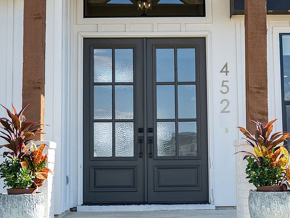 Welcome to 452 Farmstead Drive, where timeless farmhouse design meets refined modern luxury. Nestled on a quiet cul-de-sac, this thoughtfully crafted home combines high-end finishes with effortless functionality, all in one of Seguin's most desirable new home communities. From the moment you step through the double entry doors, you're greeted by tall ceilings, 8-foot interior doors, and a warm palette of black-on-black windows that flood the space with natural light. The chef's kitchen is a showpiece featuring ceiling-height cabinetry, granite countertops, an induction cooktop, convection oven, and pot filler, all complemented by a spacious island with built-in storage and dual trash drawers. Gather around the wrapped-mantel fireplace, or entertain effortlessly with motorized kitchen blinds, smart climate control, and a covered patio that opens to an extended foundation-paired terrace perfect for outdoor dining. The recreation room's private patio entry offers seamless indoor-outdoor flow. Retreat to the primary suite with a stand-alone soaking tub, custom vanity, and spa-like finishes. Additional highlights include a laundry room with sink and grooming table, plumbed water softener, two A/C units and water heaters, and a 2.5-car garage with side entry. Blending craftsmanship, comfort, and a touch of elegance, this is modern farmhouse living at its finest.