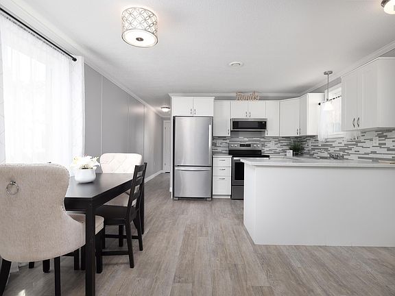 Welcome to this well-maintained mini home, just 15 years old and filled with thoughtful features. The spacious eat in kitchen boasts white cabinets, plenty of counter space, stainless steel appliances, and a stylish backsplash, offering both function and charm. The living room is bright and inviting with a large picture window, and a ductless heat pump provides efficient heating and cooling year-round. The primary bedroom is generously sized with double closets and is conveniently located next to the main bathroom and laundry combination. At the opposite end of the home, you’ll find two additional bedrooms and an extra storage closet, perfect for a growing family, guests, or a home office. Situated on a desirable corner lot, the property includes a double paved driveway and a shed for all your outdoor storage needs. Move-in ready and located in a welcoming community, this home is ideal for anyone seeking comfort, convenience, and value.