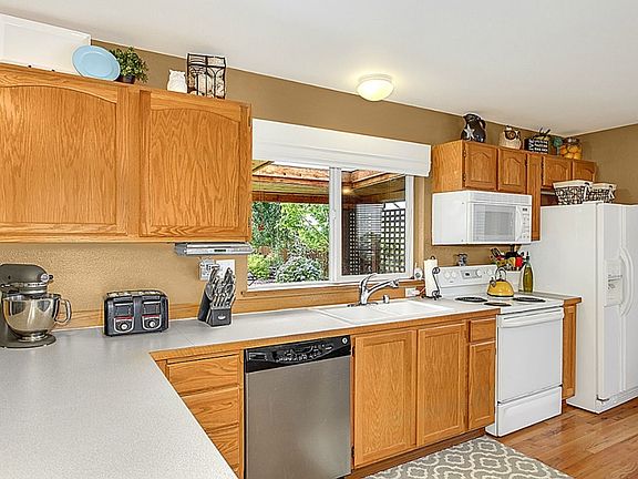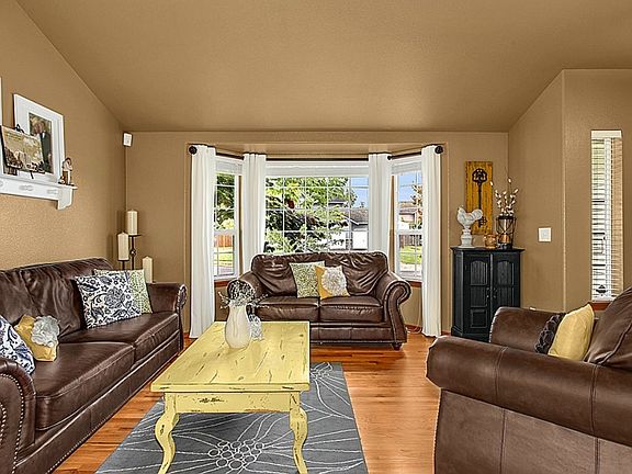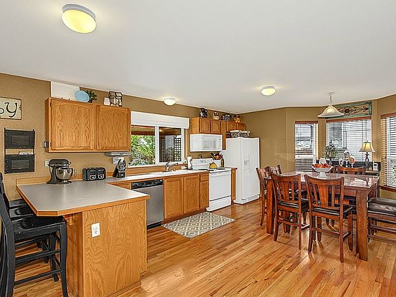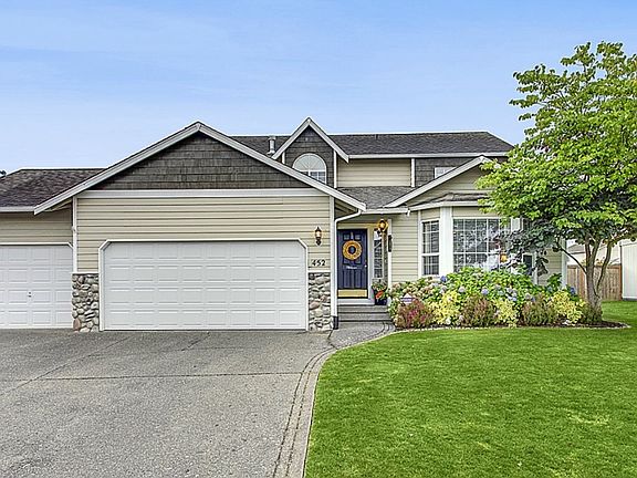 Designer touches throughout this 2069 sq ft, 4 bedroom, 2.5 bath home in desirable Copperwynd! Beautifully appointed on .28 acre lot w/ Mt Rainier view. Features include hardwood floors, oversized kitchen w/island plus an eating bar which opens to large family room w/ cozy gas fireplace. Formal living & dining room. Covered patio. 3 car garage w/ extra finished room. The beautifully landscaped yard is fully fenced & boasts a raised bed garden, play area, 10 x 12 shed w/ loft, & RV parking.