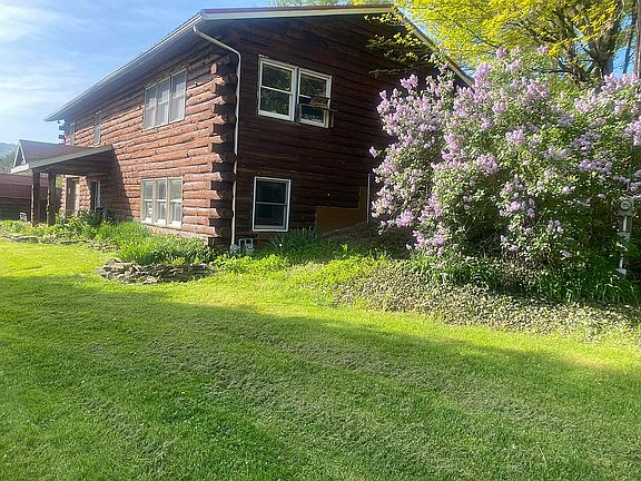 Log home built by owner. 3. Bedrooms on the main floor. Two extra rooms in the basement. Right next to the Alleghany River and access to route 6. Barn and shed included. Beautiful gardens all around the house. New high efficiency heater in 2022 which heats the basement floors. New metal roof as well.