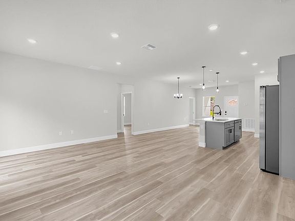 Don’t miss this incredible opportunity! Welcome to this stunning brand-new construction offering 1,865 square feet of thoughtfully designed living space. This modern 4-bedroom, 3-bathroom home features an open-concept layout filled with natural light, luxury vinyl flooring throughout, and high-end finishes that elevate every corner of the interior. The contemporary kitchen is a true highlight, equipped with quartz countertops, stainless steel appliances, sleek white cabinetry, and stylish pendant lighting above the expansive island – perfect for both everyday living and entertaining. The spacious primary suite offers a private retreat, complete with two walk-in closets and a spa-inspired bathroom featuring a freestanding soaking tub, a separate tiled shower with matte black fixtures, and a double vanity with quartz countertops. The additional bedrooms are generously sized, each with access to beautifully designed full bathrooms, providing comfort and privacy for family members or guests. The laundry room includes hookups for a utility sink and offers plenty of space for storage and convenience. Step outside through the sliding glass doors to a large backyard, offering ample space for entertaining, relaxing, or future customizations. Situated on a quiet street, this home delivers privacy, comfort, and modern elegance in one complete package. With no HOA restrictions, a two-car garage, and a long driveway, this property is ready for you to move in and enjoy all the benefits of new construction in a growing area.