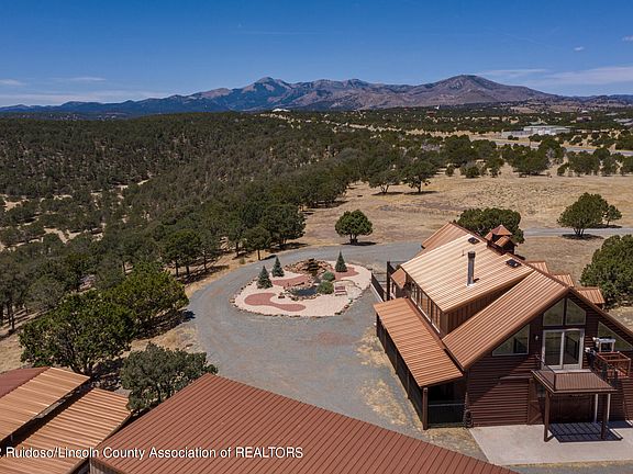Luxury Barndominium with 360 degree views of Sierra Blanca, the Capitans, Deer Valley and mesa on 6 flat acres. Custom built with sweeping west-facing grand entry stairs, enclosed courtyard and downstairs guest space with living area/kitchenette, bedroom and bath, this home offers multiple indoor and outdoor entertaining spaces - all with unbelievable views and selling fully furnished. In addition to the guest quarters, the downstairs features an enclosed parking area, service elevator and a fully enclosed storage area that could easily be converted to additional bedroom and bath spaces. This property Includes a 256 SF metal barn, 8+ covered stalls and decorative pond with waterfall to attract local wildlife.
