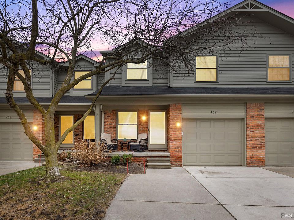 Welcome home to this stylish two-story townhouse within walking distance of downtown Clawson. Bright front living room boasts oak flooring, tons of natural light, and direct access to attached garage. Large kitchen features newer granite, large island, tons of cabinets, dining area, and door-wall access to private back deck. One entry-level full bath freshly painted and upgraded mirror and fixtures. Two spacious upper level bedrooms share a full bath. Bonus upstairs walk-in hallway closet space with built in shelving. Basement recently finished with vinyl flooring, faux brick wall, barn door, and sleek black ceiling with recessed lights.  New hot water tank (2023), new paint within the last 3 years.
