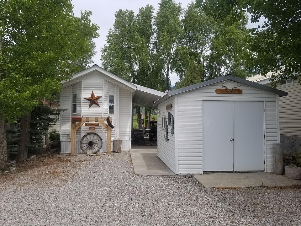 Great location in the RV park on the creek! Very clean and well taken care of this park model is a must see. Enjoy the mornings and evenings next to the creek with amazing mountain views. Golf is included in the HOA's.