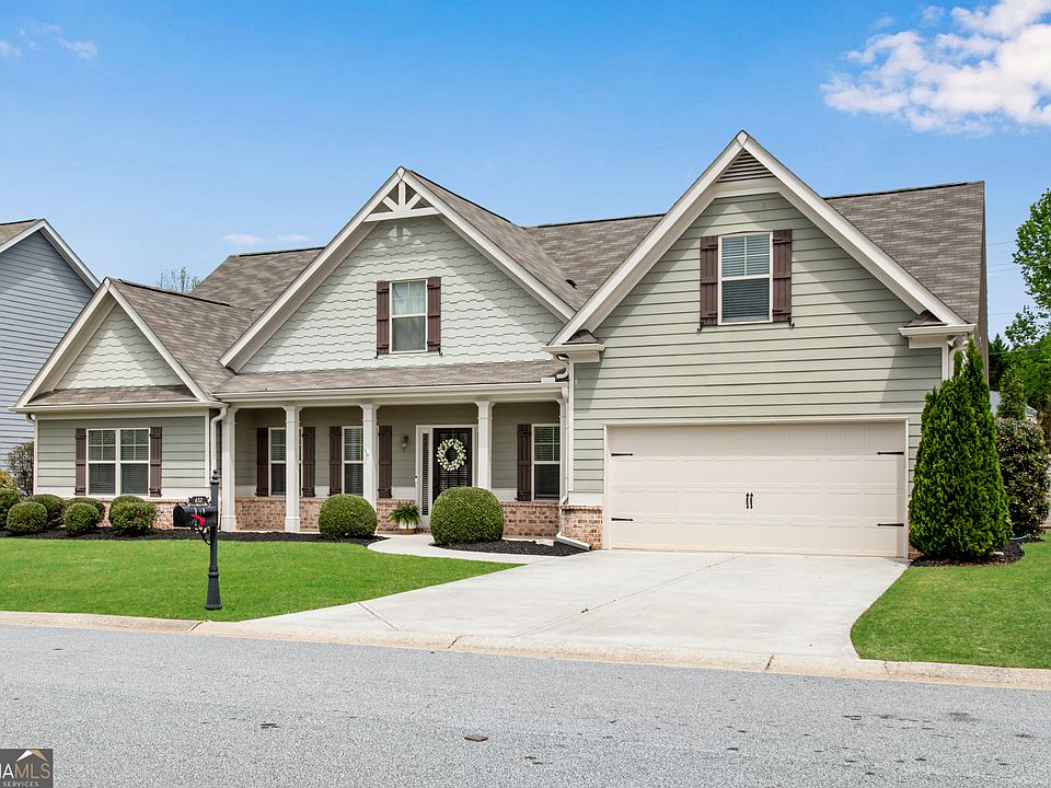 Stunning well-maintained 4-bedroom 3 full bath and 1 half RANCH home in Jefferson. Sought after Jefferson City Schools. TRULY a craftsman charmer with a coastal/cottage feels. Nestled in a cul-de-sac street end. A fully covered front porch opens throughout. to a superiorly designed offering extensive mill work, molding and trim. Walls of windows allows for a sun-lit open floor plan and natural lighting throughout., with hardwood floors (3-inch hand scraped) throughout the main living area. A chefCOs dream kitchen with an abundance of custom built-in cabinetry, 42-inch cabinets, granite countertops, stainless steel appliances, a tile backsplash, and a large center island with beautiful pendant lighting. The kitchen overlooks the breakfast area and fireside brick keeping room/great room. Elegant separate formal dining room has a high ceiling and custom wainscoting. Luxurious master on main w/ tray ceiling, sitting area and a spacious 2 separate walk-in closets, spa-like bath with tiled floor, dual vanity sinks, separate frameless full tiles walk in shower. 2 additional large bedrooms and a full bathroom on the main. Half bath on the main. 4 th bedroom upstairs can be used as a private teen /ownerCOs suite with its full private bath. Walk in washer and dryer room with shelving on the mail level. Upgrades include freshly painted exterior trim, interior painting, custom blinds. Bronzed hardware, newer lighting. Serenity in your own backyard- sit back and enjoy this outdoor living space. Eye-catching landscape Mature landscaping a fenced backyard and sprinkler system. A beautiful covered back patio with a brick fireplace perfect for outdoor living on a fenced backyard. Fully sodded level lot. Neighborhood pool, pavilion, & playground. Conveniently located near grocery stores, parks, schools, I-85, Tanger outlets, highway 129 and more!