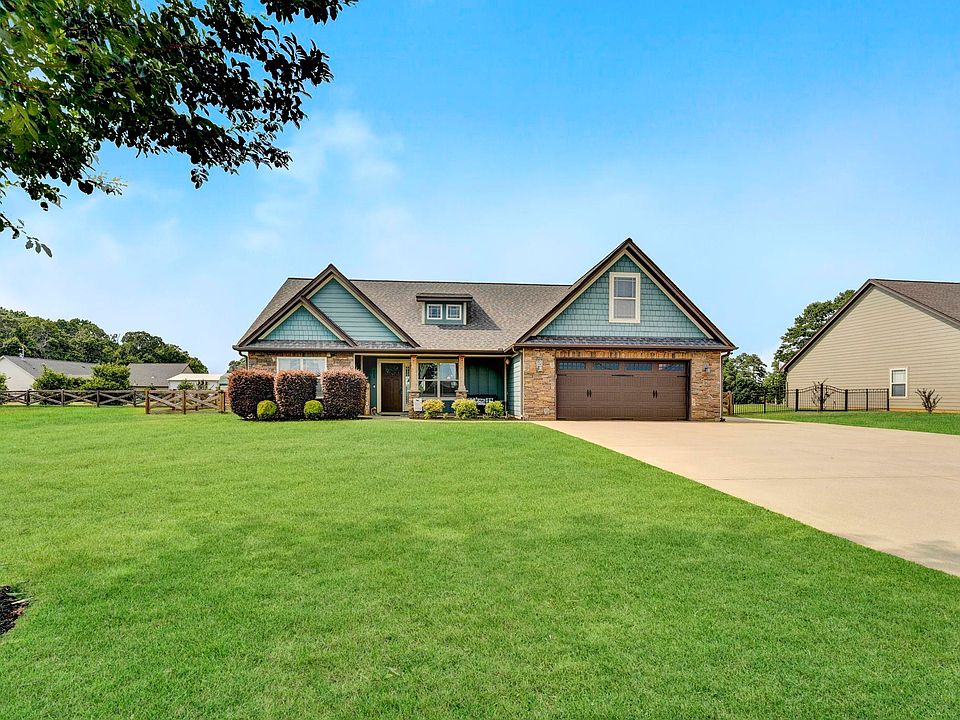 MOTIVATED SELLER! Welcome to your serene country retreat! This charming 3-bedroom, 2-bath home nestled in a peaceful setting offers a perfect blend of comfort and tranquility. Upon entering, you are greeted by a spacious living area filled with natural light, perfect for cozy evenings by the fireplace. The adjacent kitchen boasts modern appliances, ample storage, and an eat in dining room ideal for both casual dining and entertaining. The master suite provides a spacious bedroom, walk-in closet, and an en-suite bathroom featuring dual sinks and a relaxing soaking tub. Two additional bedrooms across the home offer plenty of space for guests or a home office. While this home provides 1 story living, a highlight of this property is the bonus room, ideal for a playroom, media center, or home gym, offering flexibility to suit your lifestyle needs. Outside, step into your fenced backyard oasis, complete with raised garden beds and a 12x32 storge shed. The large, flat yard is a blank slate for your outdoor dreams to come true. Conveniently located just 15 minutes from downtown Greer and 10 minutes from BMW this home provides you with the country feel while also being close to shopping and restaurants.