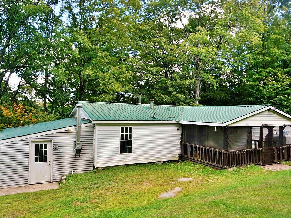 New price. This nicely renovated home situated in the hills of Sheffield has been updated and refreshed and is move in ready. A covered entry- mud room is convenient to vehicle unloading and a large covered and heated porch offers year round use. The large open living-dining room affords spacious and welcoming spaces for entertaining and family gatherings. The kitchen has been completely redone and new appliances are installed. The primary bedroom has a full bath with large tub and shower. There is another bath which services the other two bedrooms. The floors are tiled and radiant heated via oil or pellet furnaces so heating is uniform and reliable. There is a seperate building with full bath that houses the pellet furnace. It could be set up as extra guest quarters. Another shed contains the automatic feed for the pellet furnace. There is a propane whole house generator and, just below the home is a poured concrete pad ready to be a base for a garage. The land is sloping and wooded but there two nice meadows toward the back, one with a pond. This property is perfect for someone who enjoys hunting as there is an elevated deer stand overlooking one of the meadows. In addition the VAST snowmobile trail is immediately in front for easy access. And Sheffield allows ATVs on the town roads. This is a perfect home for either primary or seasonal use so come take a look.