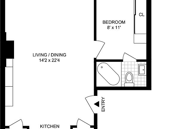 Welcome to 452 West 23rd Street #2A. Step into this sunny, expansive 1 Bedroom. With nearly 11' ceilings, generous living room space, custom bookshelves, and a seamlessly fitted kitchen, this home comes together to offer an extremely unique sanctuary. The home also includes a full size fridge, custom countertops, and cabinetry. This loft-like home also includes custom built-in closets in the bedroom for additional storage.