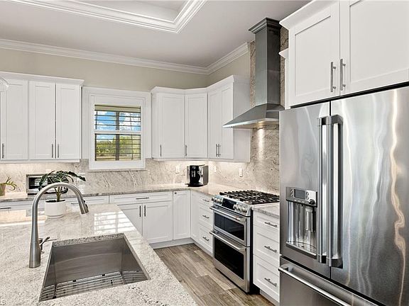Portrait-screened lanaiScenic viewSleek ge profile appliancesPgt windows and doorsGlass pocket doorDeep two-car garage