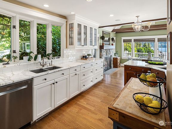 One of a Kind…This iconic Mercer Island estate offers breathtaking East facing Lake Washington vistas and seamlessly blends the charm from its original 1934 construction with modern amenities and exceptional custom updates. The historic main house offers a dramatic primary suite that spans the entire top floor, convenient main floor guest suite plus 2 additional bedrooms in the daylight basement. The storybook 1/2 acre+ grounds feature a tranquil creek with footbridge, generous lawn space, gardens and meandering pathways to appreciate this private setting. The detached carriage house also enjoys the same jaw dropping views and includes a full kitchen plus 3/4 bath-a perfect space for out of town guests, work from home or live-in au pair.