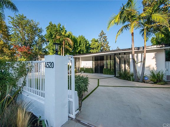 Spectacular mid-century modern single level residence! Highlighted by its double gated circular drive, high ceilings, grand living spaces, gleaming wood and era perfect terrazzo floors! Recently updated with designer touches throughout which include a wonderful chef's kitchen with quartz counters, customized cabinetry, subzero refrigeration, top-of-the-line stainless appliances and separate butlers pantry. Featuring a truly grand entertainers living/media room anchored by its central fireplace, full service wet bar and walls of glass overlooking the spectacular rear yard. Encompassing four spacious bedrooms that include a beautiful master suite with dual walk-in closets, sitting area, romantic fireplace and serene spa styled bath with multiple shower heads and separate dual sink vanity. Step out and decompress in the expansive rear yard, with fantastic fire side bar top, outdoor kitchen, expansive patio retreat and pond styled sparkling pool with cascading water feature, all beautifully surrounded by artificial lawn and towering trees that offer the perfect amount of privacy and serenity! Located in the Lanai Road Elementary school district and just a short stroll to Blvd shops and restaurants. Enjoy mid-century modern living at its finest!
