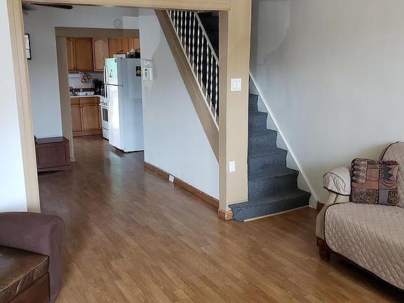 3 bedroom row home updated thru-out, laminate floors and carpeted bedrooms.