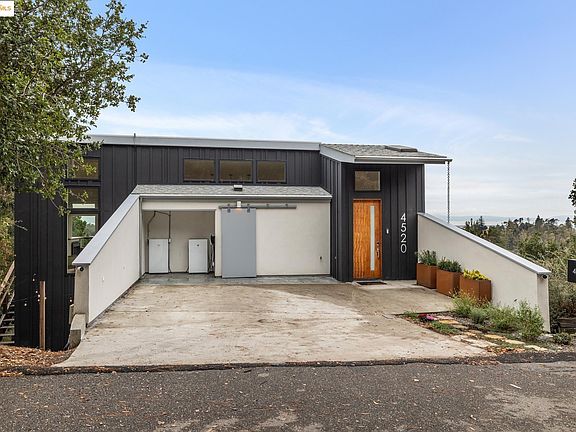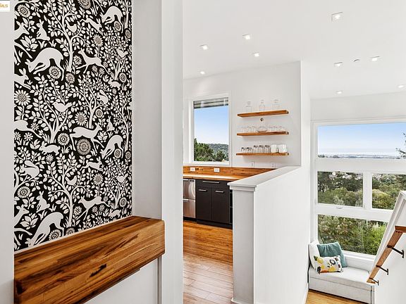 Perched in Oakland’s coveted Sequoyah Hills, this striking modern home feels like a luxe treehouse with panoramic water and skyline vistas. Soaring ceilings and views from every room! Completed in 2020, the home blends sleek design with refined comfort. A vaulted, skylit entry opens to a sun-drenched great room with floor-to-ceiling windows, gas fireplace, and seamless flow to a wraparound view deck and lower patio with built-in seating and firepit, perfect for relaxed entertaining. Downstairs, three airy bedrooms and an office boast high ceilings and enjoy bay views through 8' tall windows, alongside a spacious bonus room ideal for a media lounge, gym, or studio. Luxury finishes and modern systems elevate every detail: in-floor radiant heating, solar power with battery backup and EV charging, smart dim-to-warm lighting, solid-core pocket doors, chef’s kitchen with gas range and soft-close cabinetry, and WUI-rated exterior for wildfire safety. Nature lovers will relish the surroundings and nearby regional parks with hiking trails. Set on a private ¼-acre lot with two off-street parking spaces and bike storage, this home offers tranquility, technology, and timeless sophistication, all moments from Sequoyah Country Club and the Oakland Zoo. Open Oct. 25 & 26, 2:00-4:00PM.
