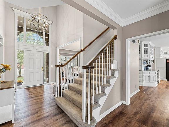 PRIMETIME PRIVATE OASIS IN THE HEART OF LEAWOOD! Nestled in the coveted Worthington subdivision in Blue Valley School District, this elegant 4-bedroom, 3.5-bath home offers refined living with resort-like outdoor amenities. Outside, discover your personal retreat: a saltwater in-ground pool with automatic cover, lush landscaping and multiple outdoor entertaining zones. Step into a light-filled floor plan where warm hardwoods and abundant windows create a welcoming ambiance. Great Room features a dramatic wall of windows and a striking see-through fireplace that connects both living areas—ideal for both day-to-day comfort and entertaining. The chef’s kitchen is a true focal point: crisp white cabinetry, center eat-in island, generous granite countertops, beverage bar and stainless steel appliances. Adjacent breakfast and hearth spaces flow effortlessly to the back patio—perfect for indoor-outdoor entertaining. Front office, formal dining, laundry room, mud room and half bath for added conveniences. Retreat upstairs to the spacious primary suite featuring a sitting area and spa-like bath including a whirlpool tub, double vanity, separate shower and walk-in closet. Additional spacious bedrooms with one including a private en-suite, while the other two share a bath. The finished walk-out lower level expands your living options with a family room and rec/game area. A half-finished storage space awaits your customization. With an attached three-car garage, there’s room to park, play and unwind in privacy. Set within the highly regarded Blue Valley School District, just moments from shopping, dining, parks, and major highways, this home delivers a rare combination of location, elegance, and lifestyle. Experience your future home—come see this private, luxury retreat today!
