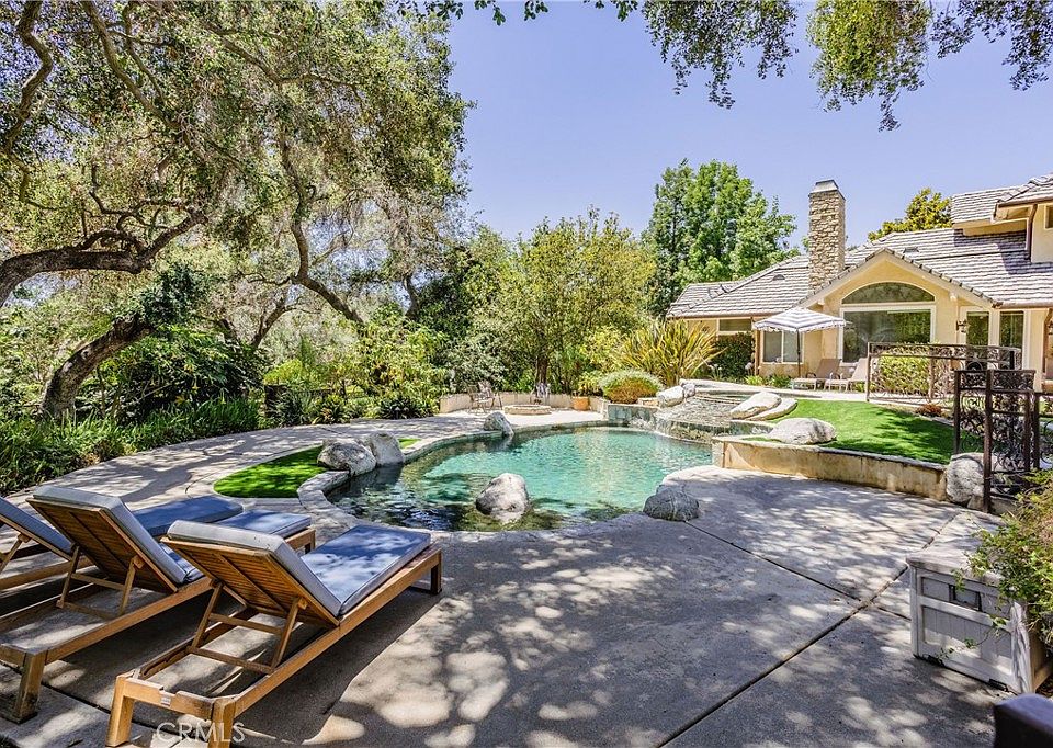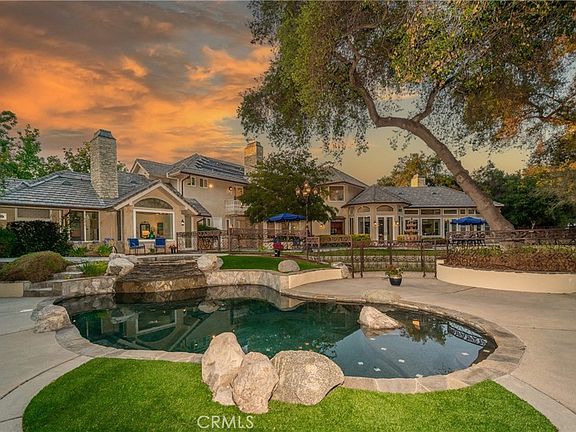 The centerpiece is a recently refreshed and transformed striking 6,000 sq ft home with 5 spacious bedrooms, 5 1/2 bathrooms, thoughtfully designed for open-concept living and effortless indoor-outdoor flow. Winding stone paths lead you across charming bridges and past a gentle stream, all surrounded by lush greenery and curated landscaping that feels like your own private park illuminated by custom designed lamp posts adding to the unique charm of the property. The grounds also boast more than a dozen citrus, avocado and fig trees ripe for seasonal picking.