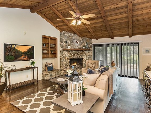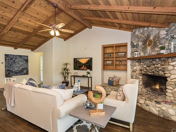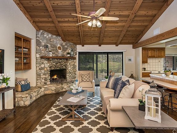 HUGE PRICE REDUCTION! Granite Oaks Ranch is a charming California estate that sits east of Temecula, just beyond the wine country. Minutes from major roads and shopping, this home is located in an equestrian community, Oakridge Ranch Estates. Here you'll find dozens of protected horse trails throughout. This spacious 2300 square foot home has 3 large bedrooms, 2 ½ baths and detached 3-car garage. Inside enjoy a floor to ceiling stone fireplace, wood vaulted ceilings and new rustic flooring. Features formal living and dining room plus bonus room or office. Kitchen is spacious with double ovens and walk-in pantry. Kitchen conveniently opens to family and garden room. Take in the breathtaking views from every room. This home is light, bright offering privacy and tranquility. Outside, the property features raised gardens, seasonal pond, RV covered parking, newly added horse stalls, dual water softener, propane tank, well and septic. Property can be subdivided. In fact power for second parcel already installed. Grounds are fully fenced. Almost 20 acres of rolling hills, ancient oaks and two private gated entrances. If you have been looking for a place to relax and unplug, come home to Granite Oaks.