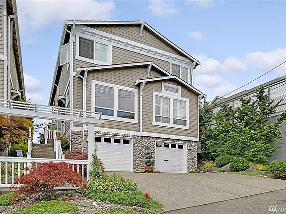 Jaw dropping Puget Sound views from every level of this impeccable home. This very private in-city retreat features numerous custom design elements crafted by interior designers from Mithun Architects, including a granite and copper fireplace in the family room, a black granite fireplace in the living room; silver leaf hand printed wallpaper in the living, dining and powder rooms and three Shoji screen pocket doors in the master bedroom. The main level has a spectacular open kitchen with an abundance of natural light. Practice your chef skills with granite countertops, a stainless steel cooktop and built-in double oven. The kitchen also has copious maple cabinets and an 11 foot eating bar, which transitions to the adjacent family room. You can also step outside to the spacious Timber Deck, with glass railings and a power awning with a drop down shade. It's the perfect place to dine al fresco or watch the sunset while enjoying a dramatic view of Puget Sound and the Olympic Mountains. Gorgeous hardwoods grace the main floor, which also includes the living room, an office/den with French doors, a formal dining room with wainscoting and a half bath. The upper floor boasts a luxurious master bedroom with hardwood floors, an 11 x 11 walk-in closet and a deck with more Sound and mountain views. The en suite bath has a tiled shower and large jetted tub overlooking the Sound (it's almost like an indoor hot tub). The upper floor is completed with two more bedrooms, a full bath and laundry room. The multi-purpose lower level is showcased by a family room with a fireplace, wet bar, full bath and a bedroom that could let it be a guest suite or MIL. It also has a quiet patio area which is wired for a hot tub. Other features include a stereo system on all three levels plus the deck, custom vertical shutters, glass blocks for privacy and light, alarm system, large capacity 75 gallon water heater, sprinkler system for the low maintenance yard and garden space, two car garage with commercial duty work sink and much more.