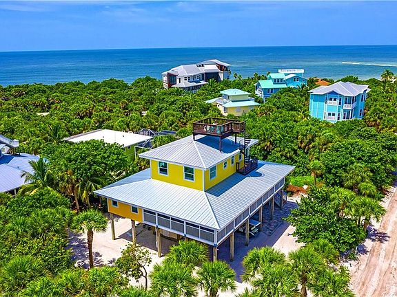 The Maine Deck has Incredible Gulf Views from the living area and lookout. This recently renovated estate home is located close to a wide sugar sand beach and the state preserve. The double sized lot offers extra space for family fun. The brand new private heated pool with adjacent bar is the perfect haven for outdoor entertaining. Tons of outdoor living space with three levels of sunny decks and covered screen porches. The top lookout offers views of the sunsets, sunrises, gulf, preserve, and Pine Island sound. Enjoy cooking in the custom kitchen as you watch the beautiful views of the water, then toast to the sunset on your expansive deck off the dining area. Well built with impact windows, hurricane straps, hardie board siding, new stairs, & newer roof. Everything about this home is mint condition and like brand new. To top it all off, this home will be a huge rental performer. This move-in home has it all.