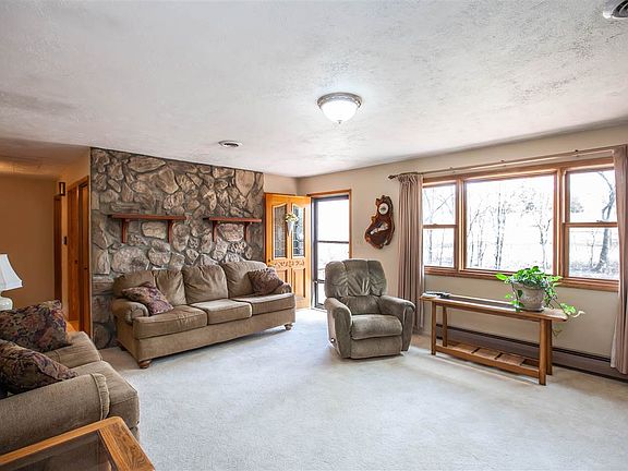 Updated 1968 ranch home with 4 bedrooms 2 baths on nearly an acre just North of town. Privately nestled against a wooded lot. Property with over-sized 34 X 26 two car garage used as work shop plus additional sheds. Lovely kitchen with updated counter-tops, cabinetry, and flooring. Two bedrooms on the main, laundry off the kitchen. Two N/C bedrooms in the lower level. Recently installed new flooring in lower level. Warm cozy family room with wood burning stove and bar/entertainment area. 2 year old A/C unit. Newer roof, Fall 2015. Septic system installed 2016.