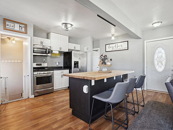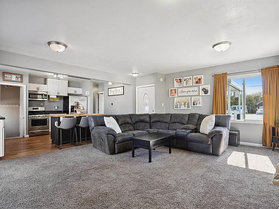 Welcome to this beautifully updated home where all that is left to do is move in! This great home feels like new with a wide open layout and gorgeous updates throughout. Walking up to this gorgeous home you will be greeted with a cozy covered porch before opening the door to a generous sized living room with an electric fireplace. The open concept of this homes invites you into the kitchen which features a large island, fresh cabinets, and stainless steel appliances. Moving through the main floor you will find 3 bedrooms all on the main floor as well as a full bathroom. In the basement there is a perfectly set up rec room for extra living space, an office, or for watching the big game on the projector with surround sound speakers! The exterior of the home features a 3-stall detached garage with an extra workshop space to house all of your toys. Schedule your showing today and come see this great home for yourself! Don't miss this one!