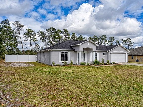 Meticulously maintained 3 bedroom 2 bath home with 2 car garage under heat/ac. Surrounded by vinyl fence for privacy; installed 2019. Large backyard with plenty of room for a swimming pool. No carpet, all laminate and tile flooring. All new flooring 2019. Stainless appliances. Washer and Dryer convey. RV parking space and electric hookup on side of home. Rods & curtains convey if desired. Garage plumbed for sink. Stainless tub in garage does not convey. Septic cleaned & pumped fall of 2020. A/C coils cleaned October 2020. Rear paver patio installed Mar 2019. Exterior painted 2019. Interior painted 2019. Termite contract is transferable.
