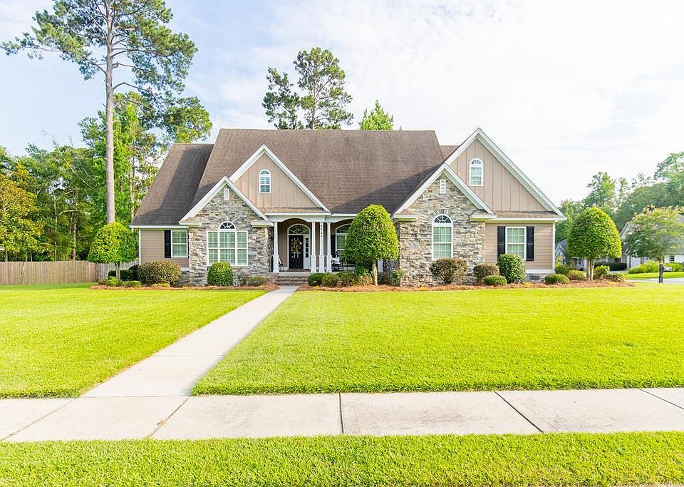 GORGEOUS 5 Bedroom home in GROVE POINT!! This home has been meticulously maintained. As you walk in, you're greeted with triple trey ceilings and a beautiful STACKED STONE FIREPLACE. This home has a formal dining room and a large eat-in breakfast area. The kitchen boasts a built in wall oven, flat top cooking surface, GRANITE countertops, and loads of storage space! Your screened in back patio can be accessed from the Primary suite, family room and breakfast area. All additional bedrooms are very large and laid out well to accommodate any sized family. Laundry room and all bathrooms have granite countertops as well. The bonus room upstairs has had a closet added to make a 5th bedroom!. The backyard is fully landscaped, fenced, and ready for you start making your own memories. The community has three pools, basketball and pickleball courts, running track, dog park and playground. Come check out this home while it lasts!