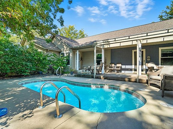 Super unique layout with a stylish sunken living room. The perfect spot for entertaining, movie nights, or just hanging out! This 3 bedroom, 2 bath Mason home delivers all the style and function you've been looking for. The open kitchen features granite counters, a large island, and brand-new stainless appliances, ideal for hosting! The primary suite feels like your own private retreat with a spa-like bath and a huge walk-in closet. Step right out from the kitchen or primary suite to your backyard oasis featuring a fiberglass cocktail pool. Some areas could use fresh flooring or paint, an easy chance to make it your own and add instant equity. Priced accordingly, this home already offers newer mechanics, premium replacement windows, and a ventless gas fireplace. Sitting on nearly a half-acre cul-de-sac lot with a fenced backyard, invisible front fence, and beautiful landscaping. Close to trails, parks, and everything Mason has to offer. This one's anything but cookie cutter!
