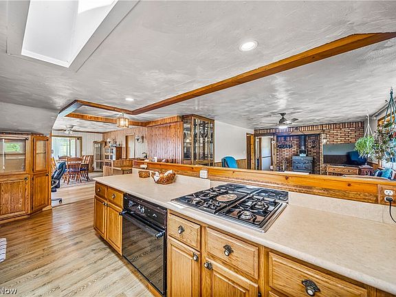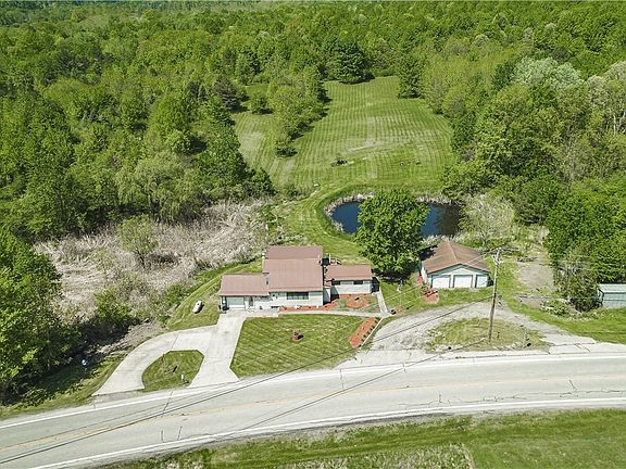 Gorgeous rolling 18+ acres on The Ashtabula River. What a view out the back of a large pond and rolling meadow. Path through the woods to 690' of Ashtabula riverfront. Hillside ranch with full partially finished walk out basement at ground level. Year round upper patio enclosure, lower level patio enclosure and deck off the back. Gorgeous! Kitchen is open to the living room and dining room. Living room has a woodburning stove. Home features master bedroom with double closets, master bath with shower - 2 additional bedrooms and bath separated to the other side of the house. Main floor laundry and drop zone lead to a small 1-car attached garage. 24 x 24 detached garage with wood pellet furnace, 6 x 24 lean-to with overhead door and metal storage trailer (can be removed if buyer does not want) Home features - Metal roof new on house 2023, Furnace and Central air new 2016, breaker box, instant hot water heater and city water. This home has it all. What are you waiting for??
